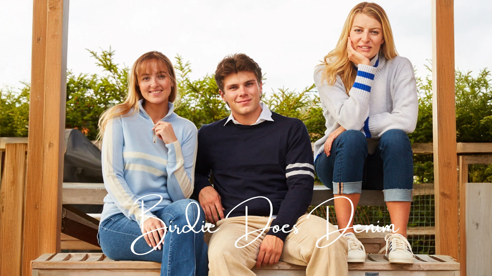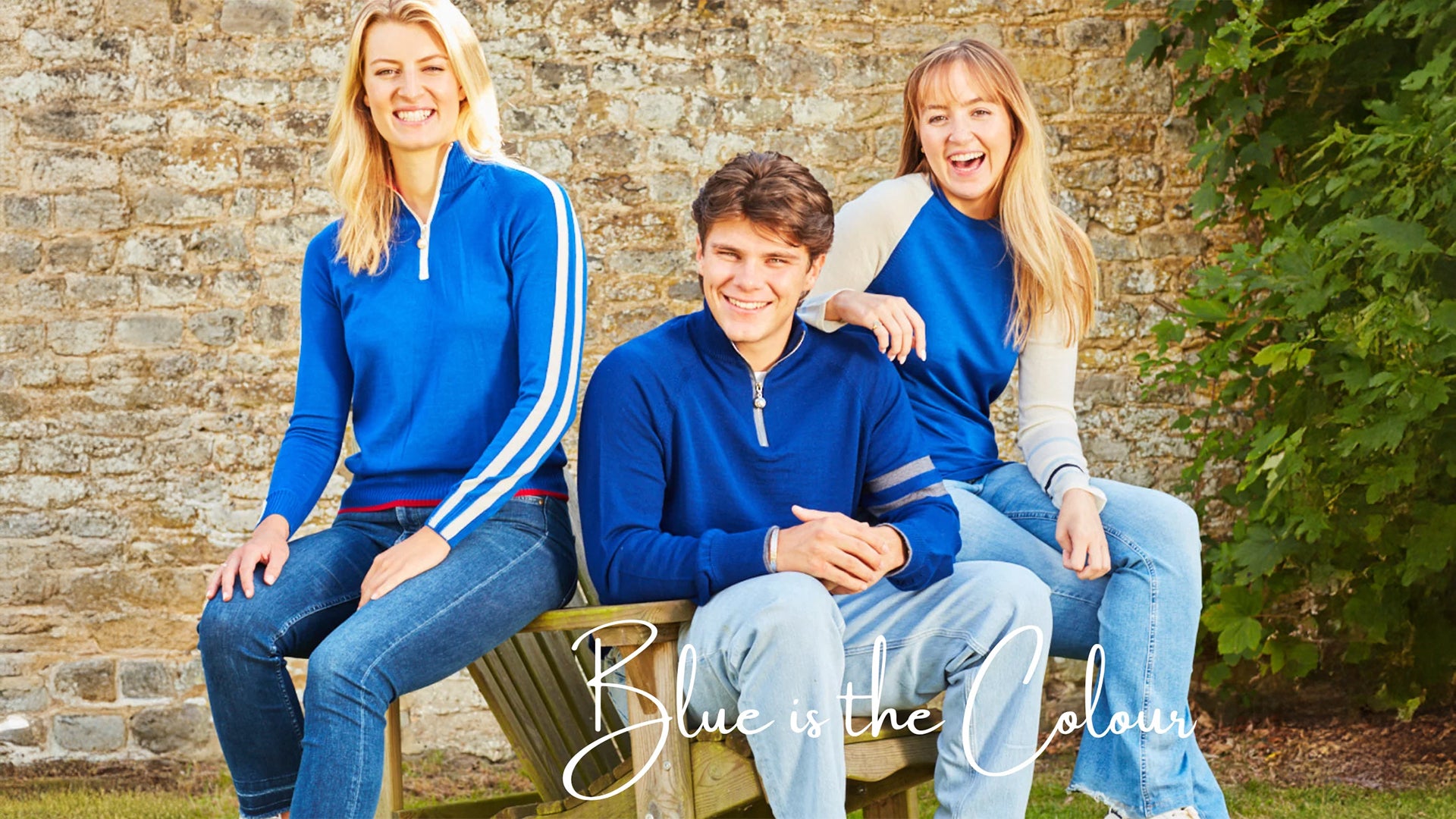 Birdie 13 zip jumper in Cobalt Blue, Soft Cream & Red